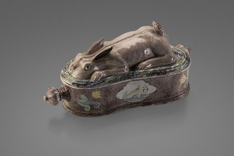 Originelle Fayence-Terrine für Hasenpastete