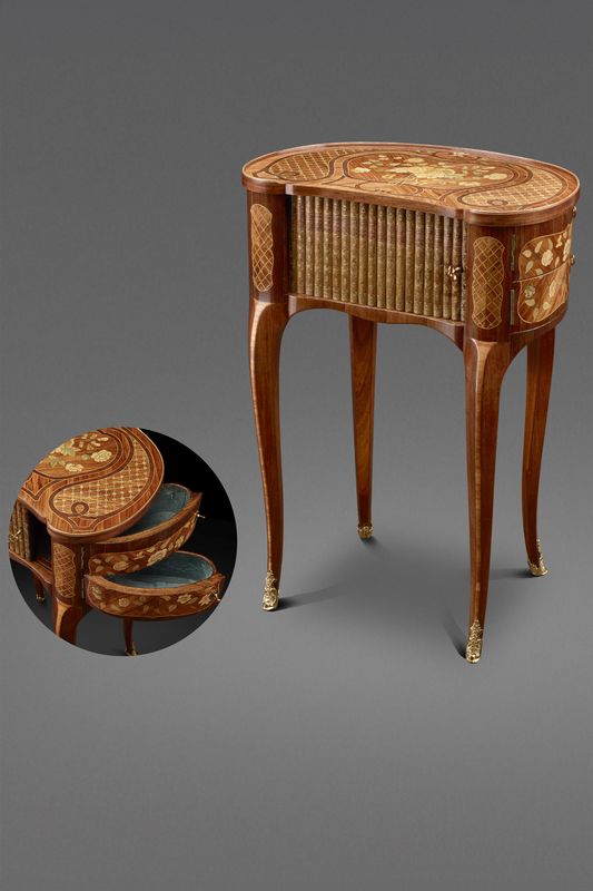 Pariser Salontisch in Nierenform mit Rollverschluss